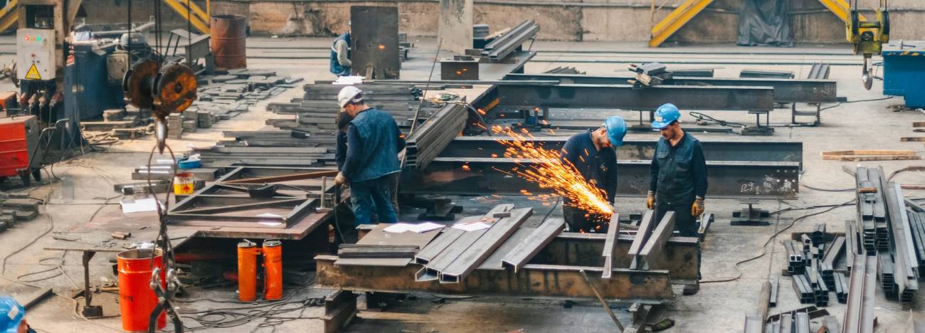Manufacturing of large and complex structures from metal components, often involving the assembly of beams, columns, trusses, and other structural elements